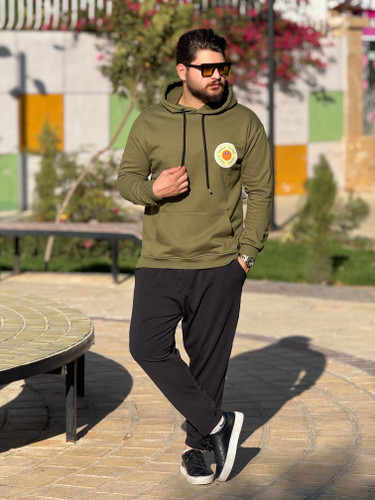 هودی سه نخ ترک طرح استیکر رنگ سبز
