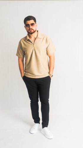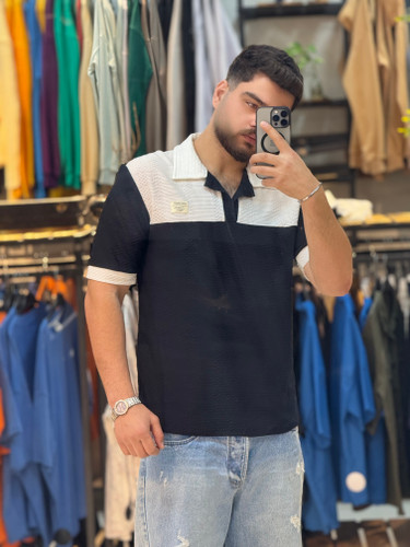 ناموجودتیشرت یقه دار پارچه الکسی رنگ مشکی-کرم