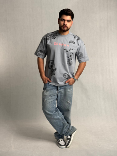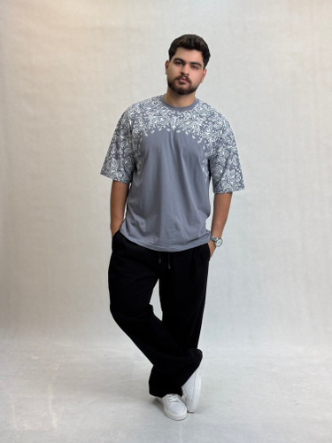 تیشرت طرح بته جقه نخ پنبه رنگ طوسی