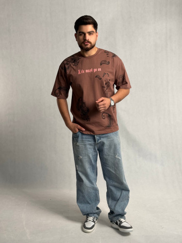 تیشرت طرح بته جقه پارچه ماکان مردانه رنگ قهوه ای