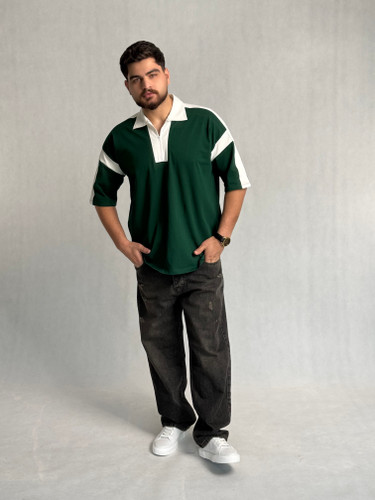 تیشرت نیم زیپ پارچه ماکان ترک رنگ سفید_سبز