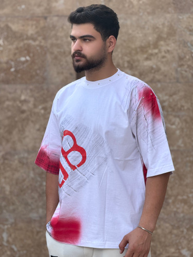 تیشرت کنفی ترک مردانه رنگ سفید-آجری