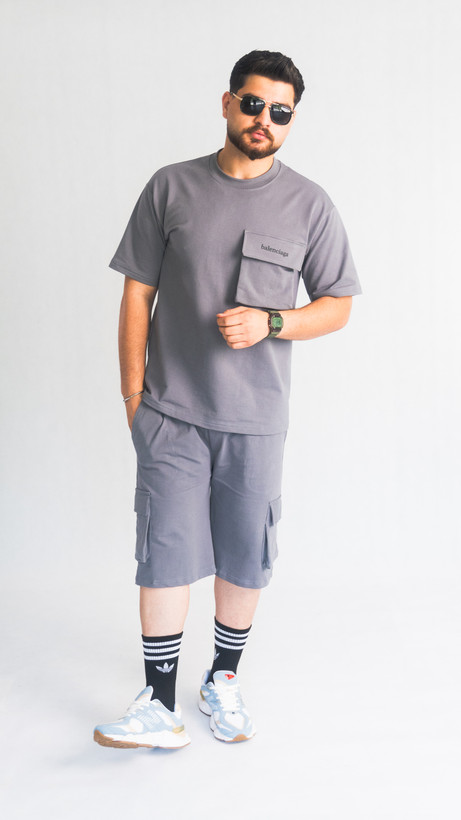 ست تیشرت و شلوارک کارگو مردانه رنگ طوسی