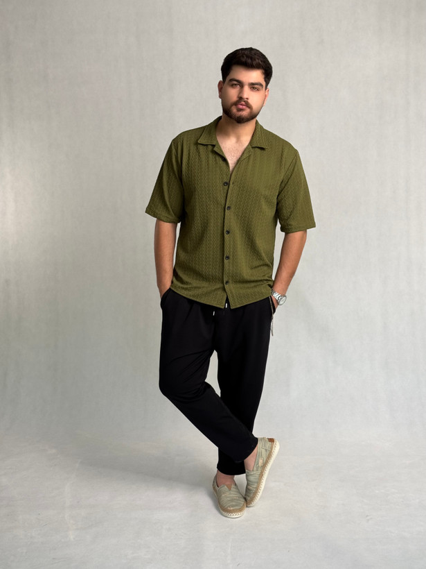 پیراهن مراکشی ترک طرح زیگ زاگ رنگ سبز