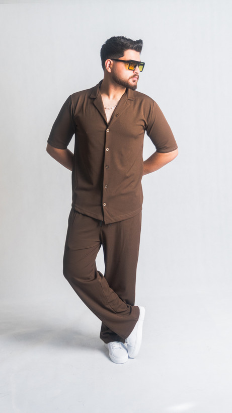 ست پیراهن و شلوار مراکشی پارچه مک ترک رنگ قهوه ای