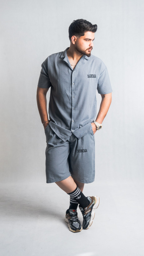 ست پیراهن و شلوارک لینن رنگ طوسی