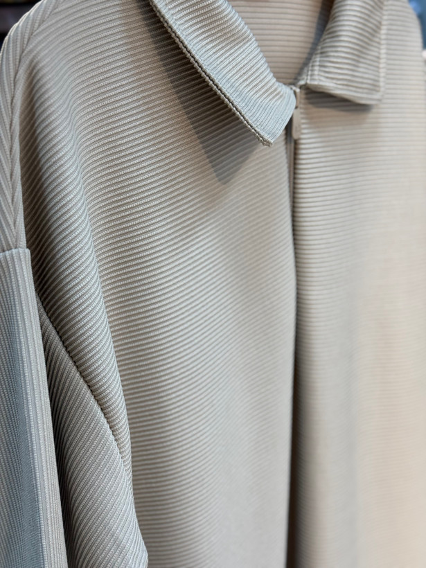 تیشرت نیم زیپ پارچه میله ای رنگ کرم