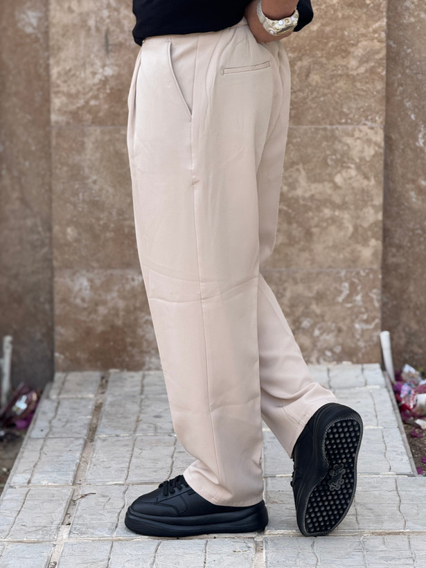 شلوار بگ اولد مانی پارچه مازراتی مردانه رنگ کرم