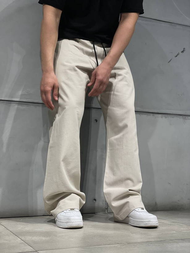 شلوار بگ کتان ترک مردانه رنگ سفید-کرم