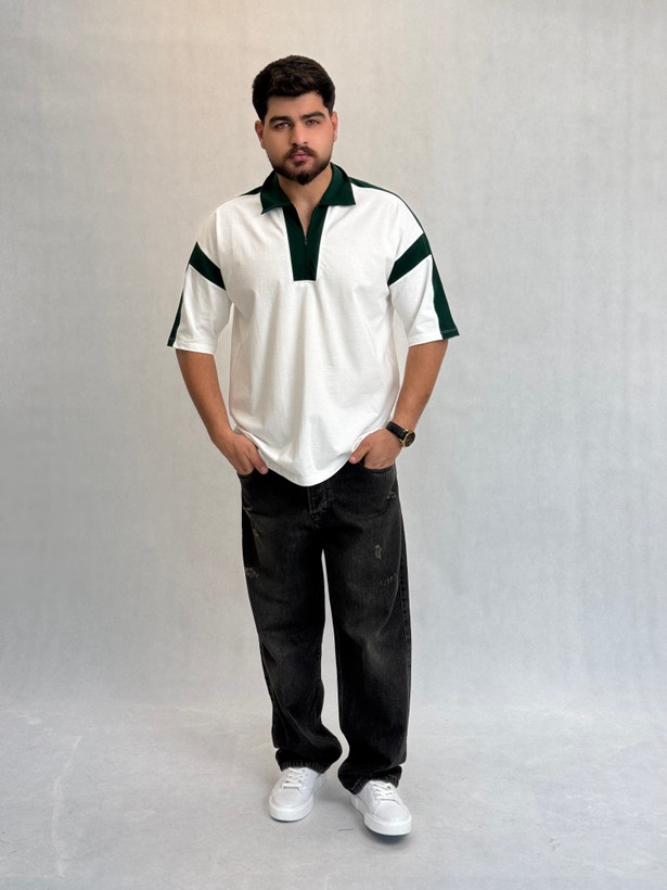 تیشرت نیم زیپ پارچه ماکان ترک رنگ سفید_سبز
