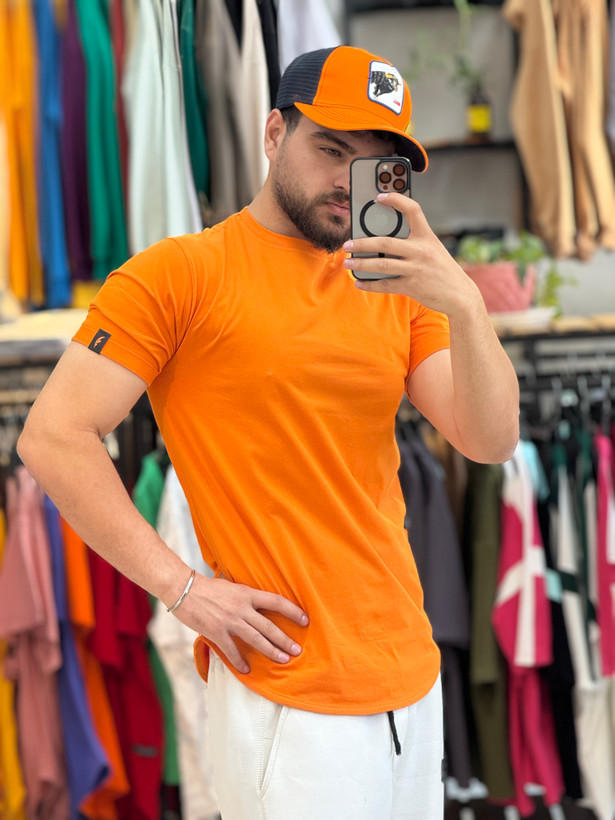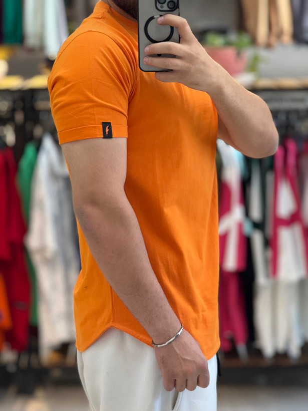 تیشرت بیسیک اندامی رنگ نارنجی کمرنگ