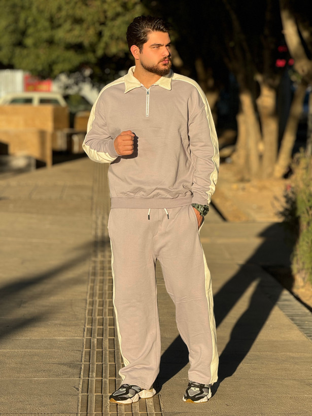 ست نیم زیپ پارچه‌ دورس سه نخ رنگ طوسی