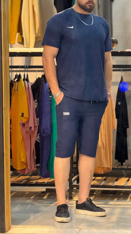 چاپ کوچک نایک روی تیشرت و شلوارک، به استایل مینیمال و اسپرتش جلوهای خاص میده.