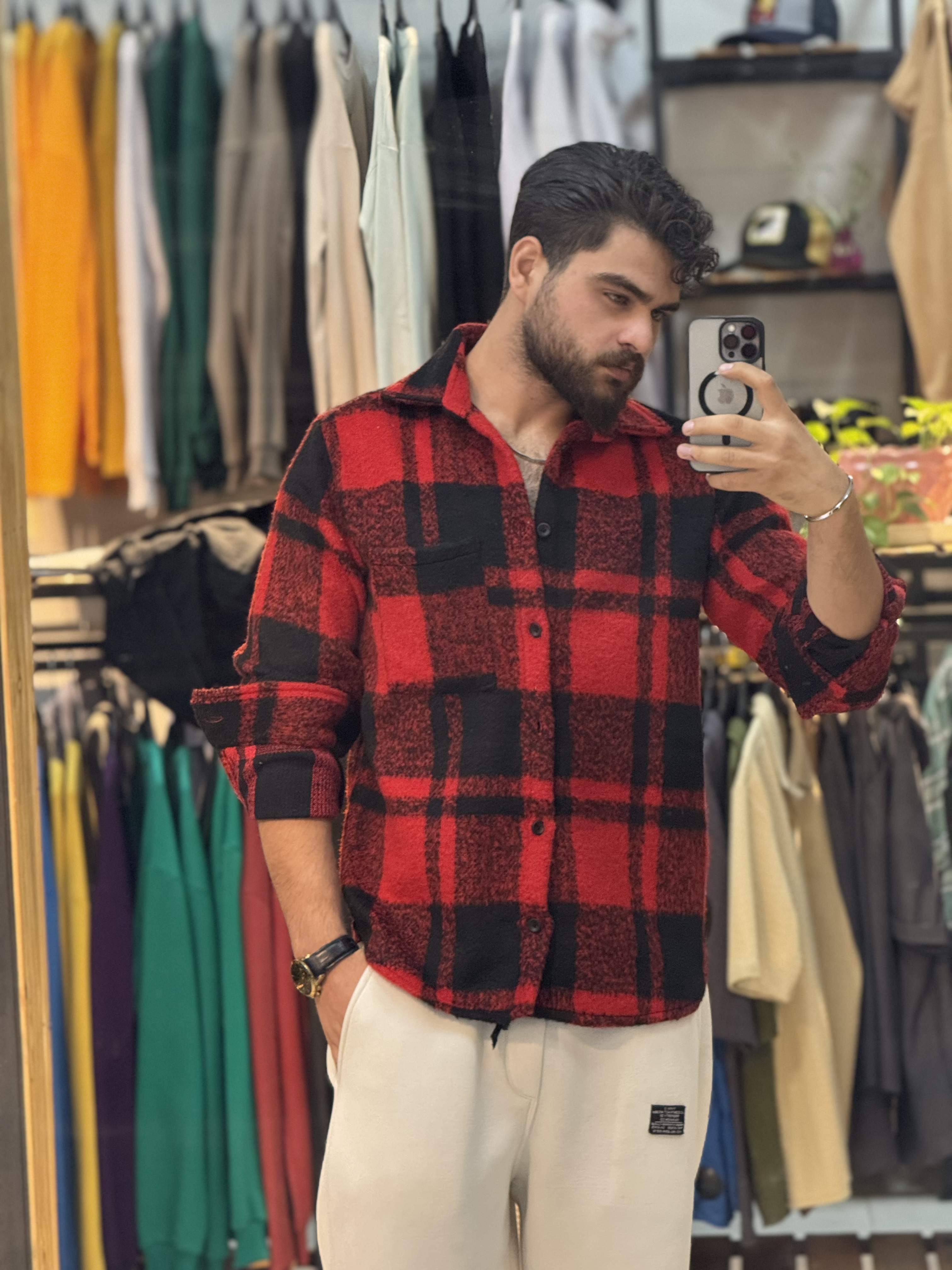 پیراهن پشمی پارچه سنگین رنگ قرمز-مشکی